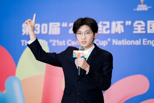 本届比赛以“LivingWithin and Beyond the21stCentury”为主题,赛制全面升级,竞争空前激烈。沈宁粤同学历经校园选拔、区域赛突围、全国半决赛等多轮角逐,并在总决赛中完成了1V1即兴演讲、四分钟主题演讲与现场问答的全流程对决,最终以清晰的逻辑、自信的台风和出色的临场应变能力赢得评委一致认可,跻身全国一等奖领奖台。